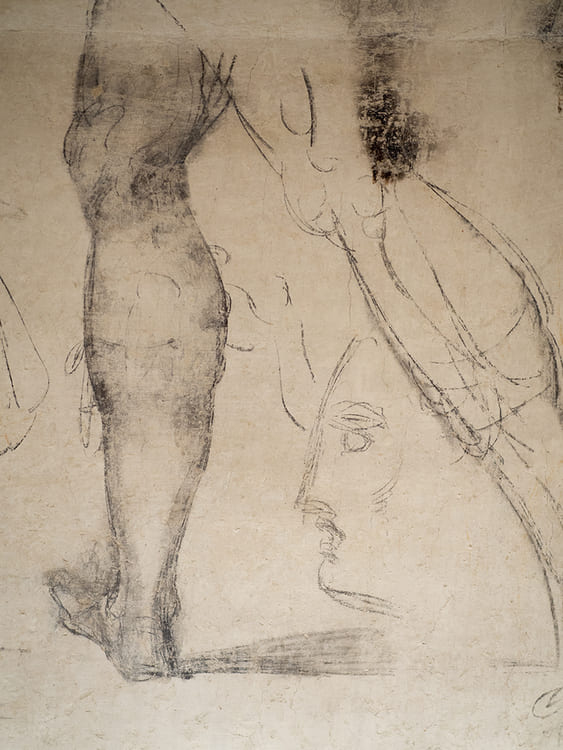 What is interesting is that these drawings, made with charcoal, seemingly so ephemeral, were covered with a layer of egg white, which is a known fixer. It means that Michelangelo wanted to preserve them and make them last.